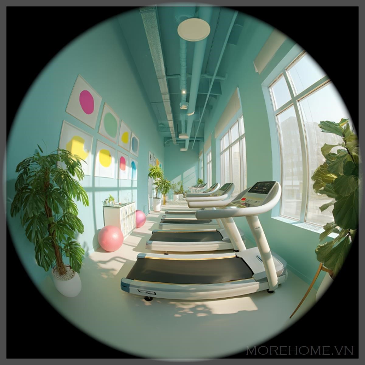 Điều đặc biệt ở không gian này là sự kết hợp giữa tính hiện đại và sự thân thiện, tạo cảm giác vừa năng động lại vừa thoải mái. Chưa kể đến những cây cảnh đặt ở các góc, mang lại làn gió mới từ thiên nhiên, khiến cho không gian càng thêm gần gũi và dễ chịu. Mỗi bước đi trên máy chạy bộ như thể bạn đang di chuyển trong một không gian không chỉ để rèn luyện cơ thể mà còn để tinh thần được thư giãn.